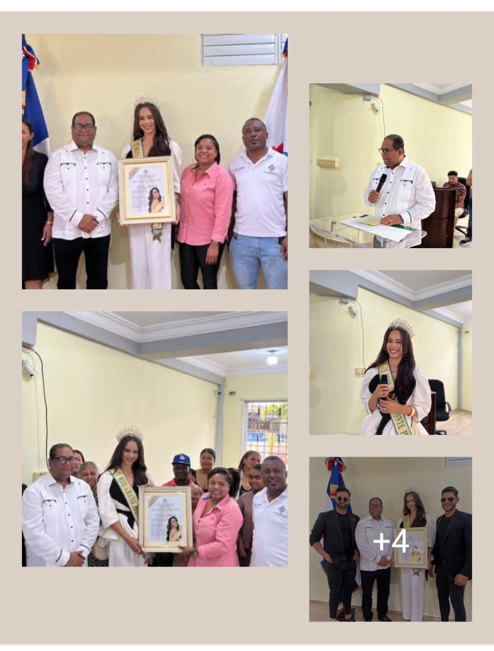 El alcalde Marcos Tavárez junto a una amplia comisión encabezada por la presidenta del consejo de regidores, Yudy Holguín, el vice presidente Roberto Heredia y la regidora Martina Abreu (Mary), recibió la mañana de este sábado a la tercera finalista del certamen internacional de modelaje Keitty Tatiana Familia, la cual nació en Sabana Grande de Boya.