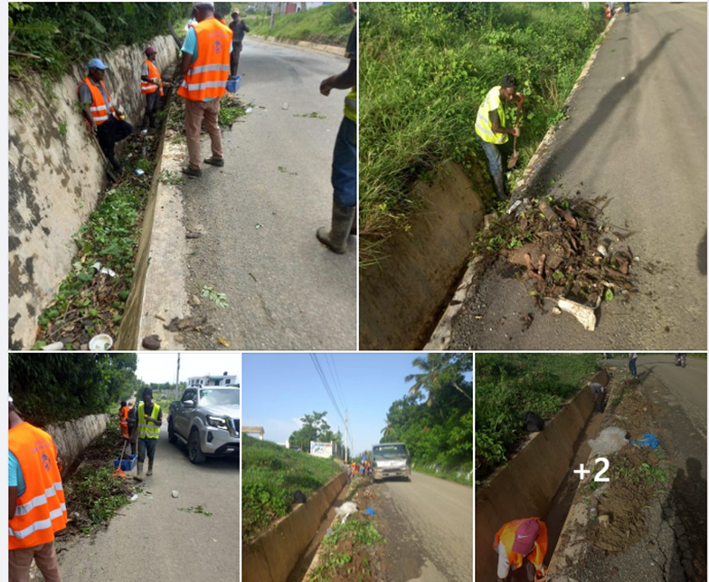 Desde tempranas de hoy, brigadas de aseo urbano, dan mantenimiento y recolectan desechos en la carretera Sabana- Tarana-Autovia del Nordeste, Ayuntamiento trabajando.
