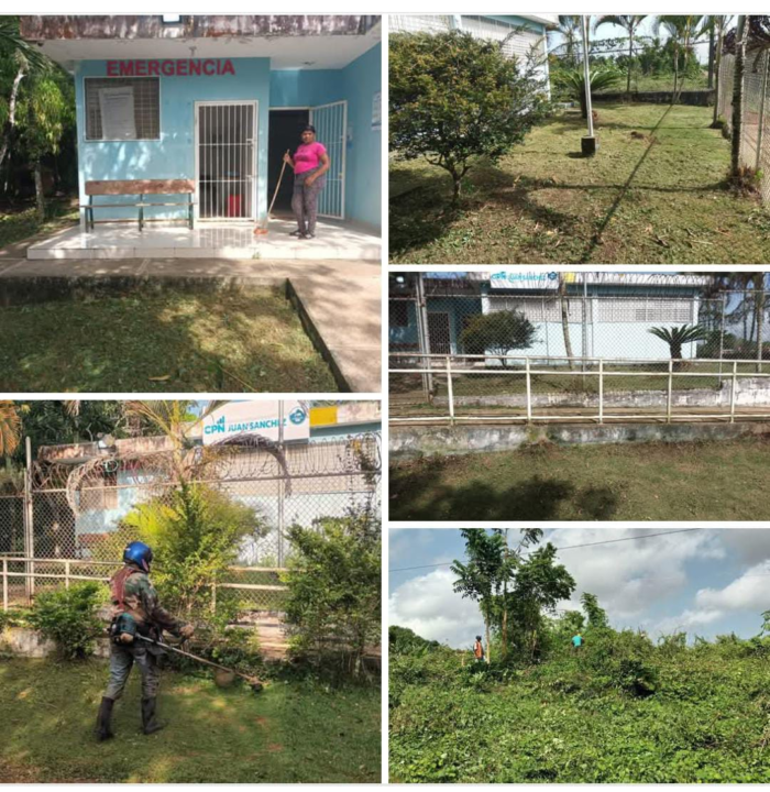 La mañana de este martes brigada de gestión ambiental brinda mantenimiento de poda y corte de grama a la poli clínica de la pista Juan Sánchez.