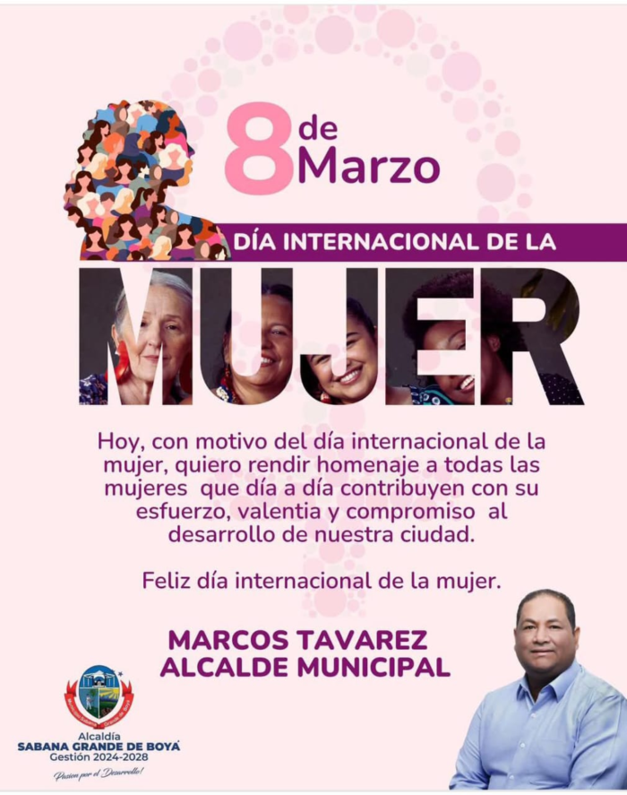 Muchas felicidades a todas las mujeres del mundo, de la República Dominicana y especialmente a las de mi querido municipio de Sabana Grande de Boyá.
