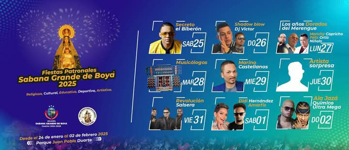 El municipio se viste de fiesta y tradición con la celebración de las Fiestas Patronales 2025, un evento que combina lo religioso, cultural, educativo, deportivo y artístico. Desde el 25 de enero hasta el 2 de febrero, el Parque Juan Pablo Duarte será el epicentro de la alegría y el talento nacional.
