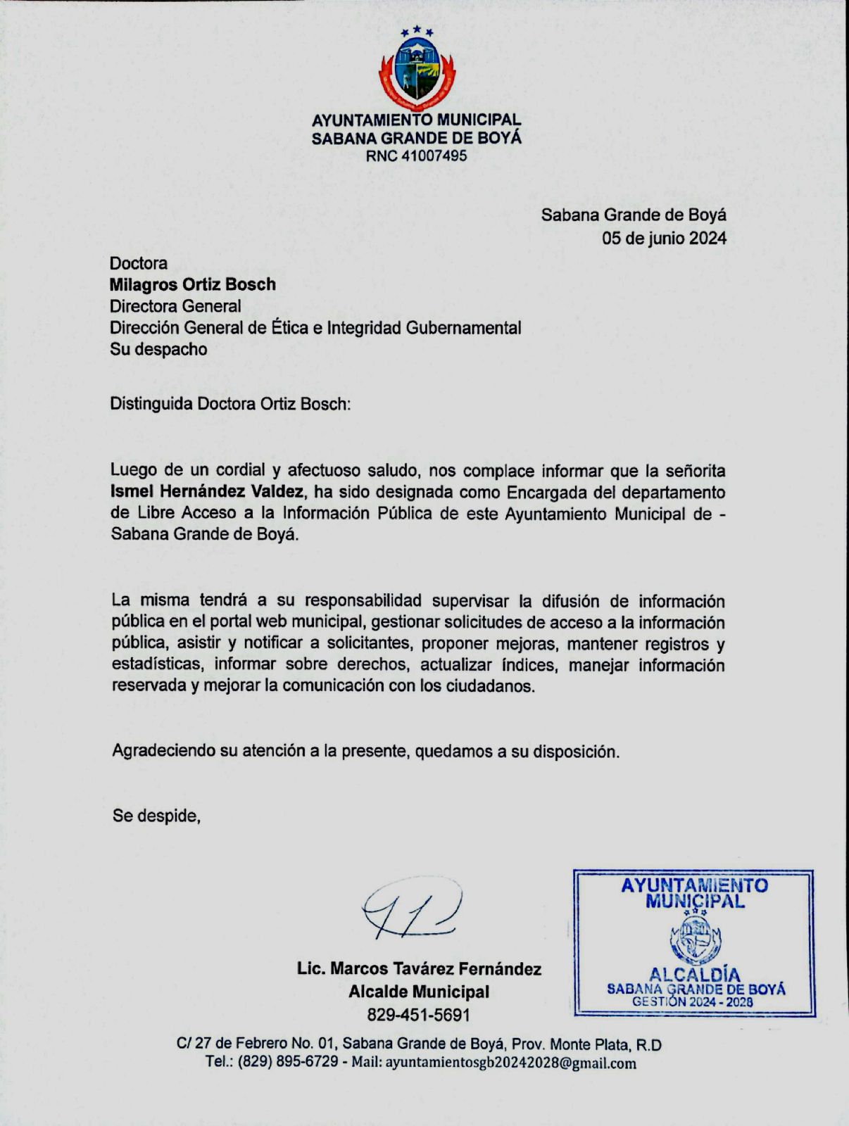 DESIGNACION DE LA ENCARGADA DE LIBRE ACCESO A LA INFORMACION Descargar311.72KB Fecha de subida: 7 junio, 2024